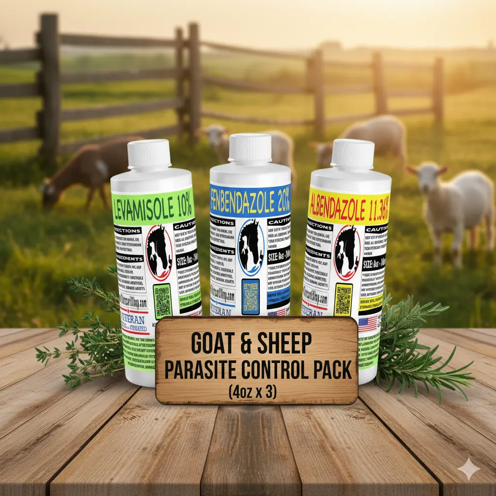 - Levamisole 10% (4oz) – Imidazothiazole class targeting GI nematodes. Effective but with a narrower safety margin in goats/sheep—use only with veterinary guidance and precise weight-based dosing.